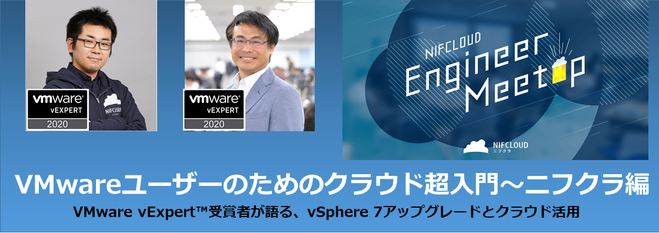 今回は、これからvSphere 7へのアップグレードを検討しているVMwareユーザーの皆さんを対象に、 vSphere 7のアップグレードの全体像とハイブリッドクラウド活用、そしてVMware vSphereを基盤とした国産クラウドであるニフクラ(今テレワークで需要が高まっているDaaSも)についてわかりやすく解説するのが今回の趣旨です。