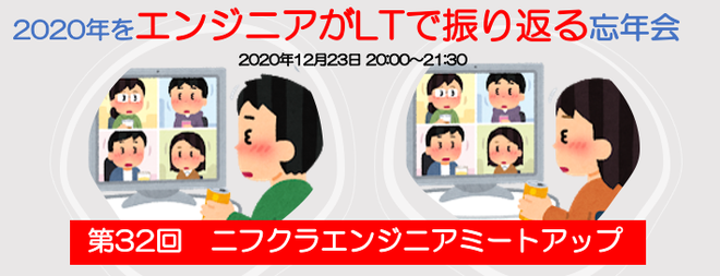今回は今年最後ということで、「2020年をエンジニアがLTで振り返る忘年会」です。 とにかく、今年はコロナ禍に振り回された一年でしたが、テレワークがニューノーマル化したり、さまざまな業種でDXが本格化する機運が高まったり、社会全体の閉そく感とともに何か大きな変化が起きそうな予感もあります。さまざまな業界で働くITエンジニアの皆様がこの1年を5分のLTで振り返るのを見聞きしながら、オンライン忘年会をやろうというのが今回の趣旨になります。